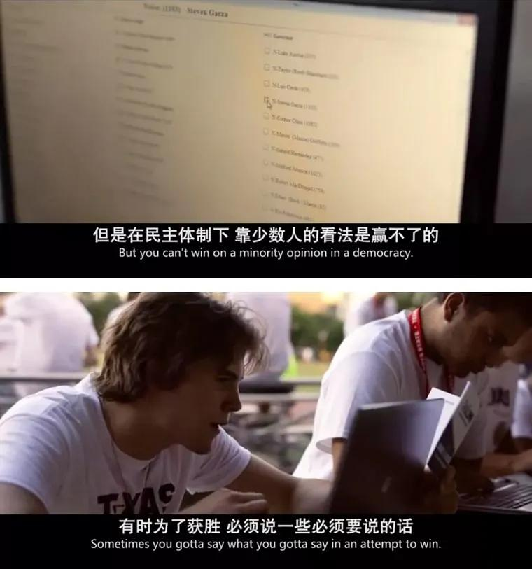 当然核心问题,诸如枪支、移民、堕胎等等也都在讨论之内。但这是一个大部分人相对保守的州,这群少年的整体政治倾向也是保守的。所以想获得竞选胜利,想成为“主角”,他们很懂得如何去模糊自己真正的观点。