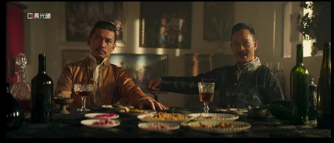 说几个我觉得还不错的设定吧,最经典的就是最终两大BOSS握手言和,简直显得前面发生的一切就是一场闹剧。电影没有什么善恶有报,都是掌权者的把戏,今天可以兵戎相见你死我活,明天可以达成一致握手合作,而那些被政权洗脑“这是为了国家”的热血分子,死于斗争,死于理想,死于画饼,死得可笑。最后将坎带进包间的是宏少爷,满霜阁最后的选择也就不言而喻了,满霜阁也入了局,而留下一命的坎也身着华丽最终入局了。