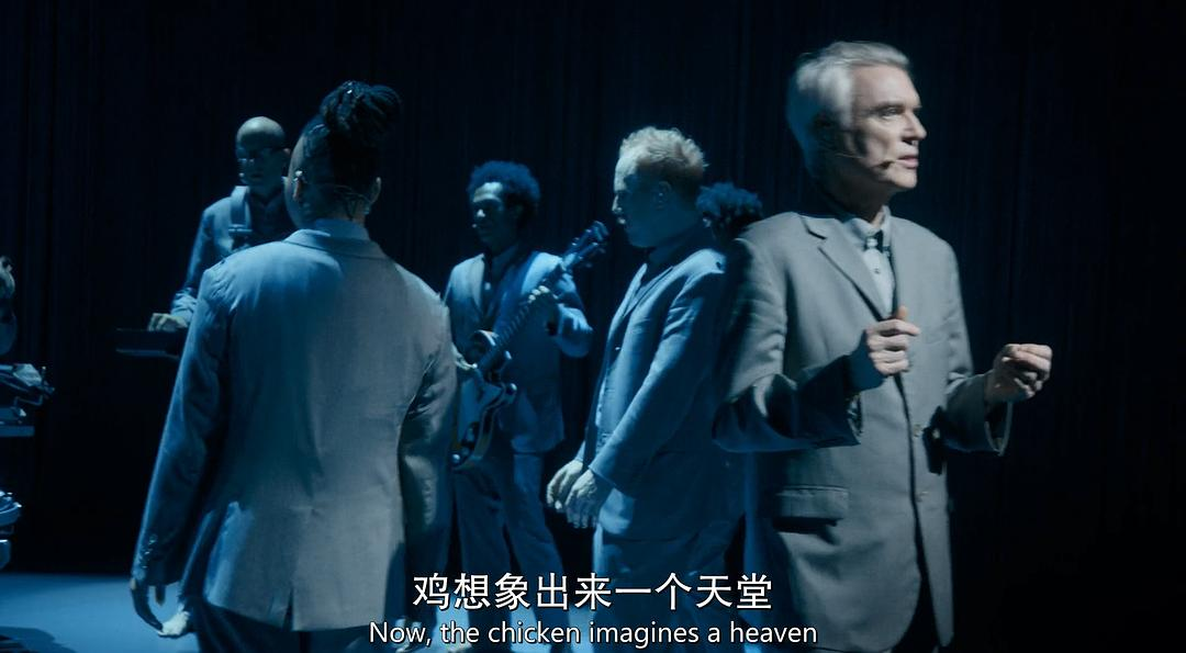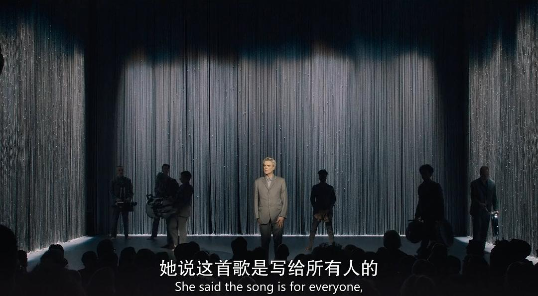 整个表演中,包含乐器在内的所有东西都在一直移动,每个表演者通过移动建立彼此的互动来模拟连接的建立。连接是大卫伯恩常常讨论的一个主题。这是因为大卫伯恩本人患有自闭症,他曾在65岁的时候说过他现在可以在一些社交场合说话了,终于不用每次都躲在角落里。跟人说话即是与人建立连接的一个方式。舞台上的大卫伯恩自信自由,酣畅淋漓。但是当表演结束后,大卫伯恩回到后台,他一下失去了他在舞台上的侃侃而谈,他对于与人相处显得局促不安。对于大卫伯恩本人,同样地,舞台也是他的乌托邦,而台下是现实的生活。电影最后一直响起”Everybody’s Coming to My House”,这既是大卫伯恩对于一个包容有爱的美国社会乌托邦的描述,也是对于他个人乌托邦的期待。