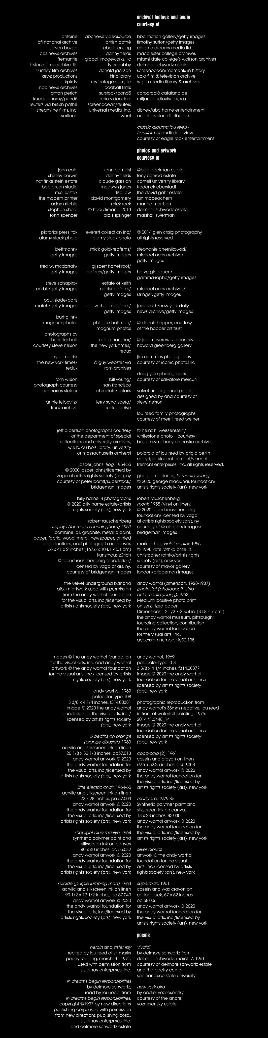 等待的人谁?曲子首先以重复的前奏出现。雪莉·科温(Shelley Corwin)讲述里德获得灵感的方法,继而出现朗读“嚎叫”的艾伦·金斯堡(Allan Ginsberg)。里德充满文学性的身份背景,正是他创作的开端。随后《我在等待那个男人》则是以小样的形式出现,凯尔正讲述他与里德初相识的情形,在他看过里德的歌词后,他们才开始寻求承载这些歌词的形式。里德等待的会是凯尔吗?最后一次,终于听到正式的版本,此时地下丝绒人员齐备,有了安迪·沃霍(Andy Warhol)的帮助终于开始录制第一张唱片。伴随快速的节奏,影像尽是当时制作《地下丝绒与妮可》的内容,只不过他们音乐中涉及的内容令他们受到冷遇。里德等的是安迪吗?没有办法知道确切的答案,但这首音乐的作用是明确的:他渐次完整,在差异中串联起里德创作内容的动向,似乎也作为了地下丝绒最初建立起的契机。