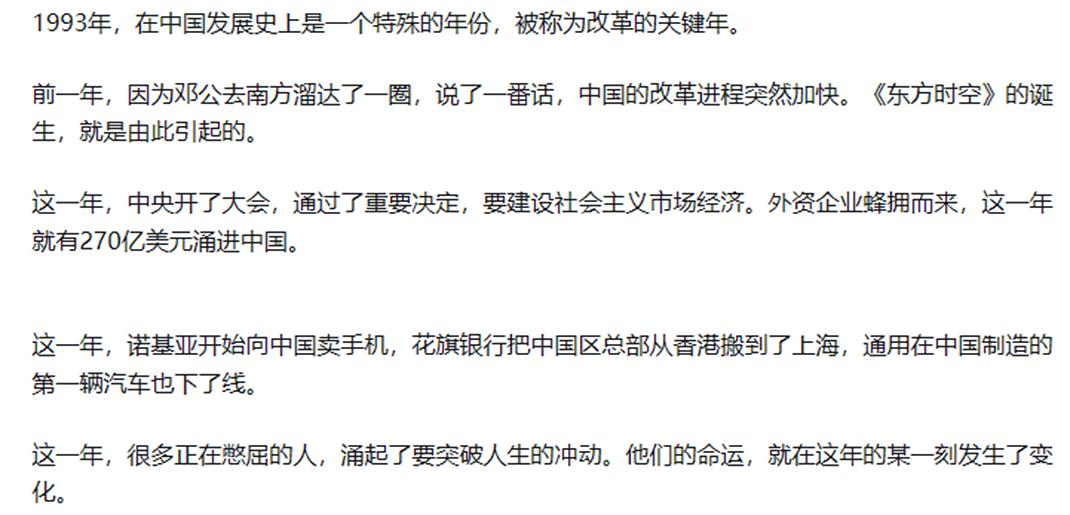 剧中所展示的时代浪潮皆有迹可循,1993年被称为中国世道的转折之年和改革的关键年,提出“实行社会主义市场经济”,从政策到相关机构改革全面服务于市场经济,并对现有产业布局及结构做出了调整。