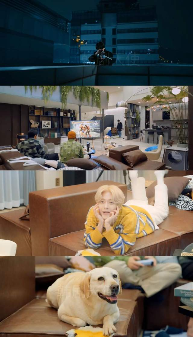 他完成今天的任务后回到家一看,家里还有两个朋友和一只大狗悠哉悠哉的打着游戏。