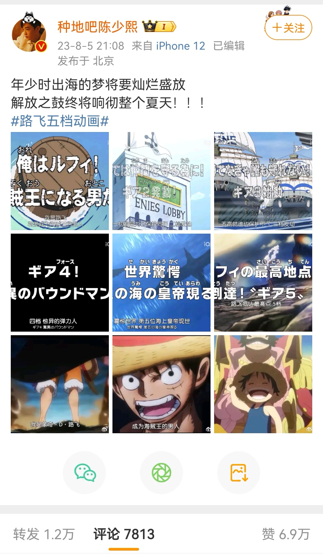 8.5陈少熙发布路飞五档相关微博