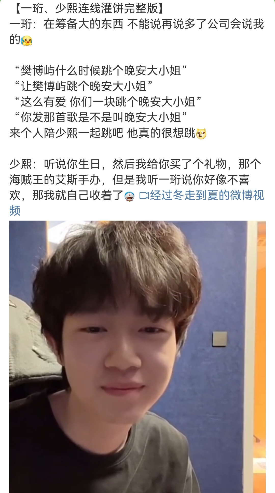 1222冬至直播 陈少熙机位 9.44 提及海贼王重制