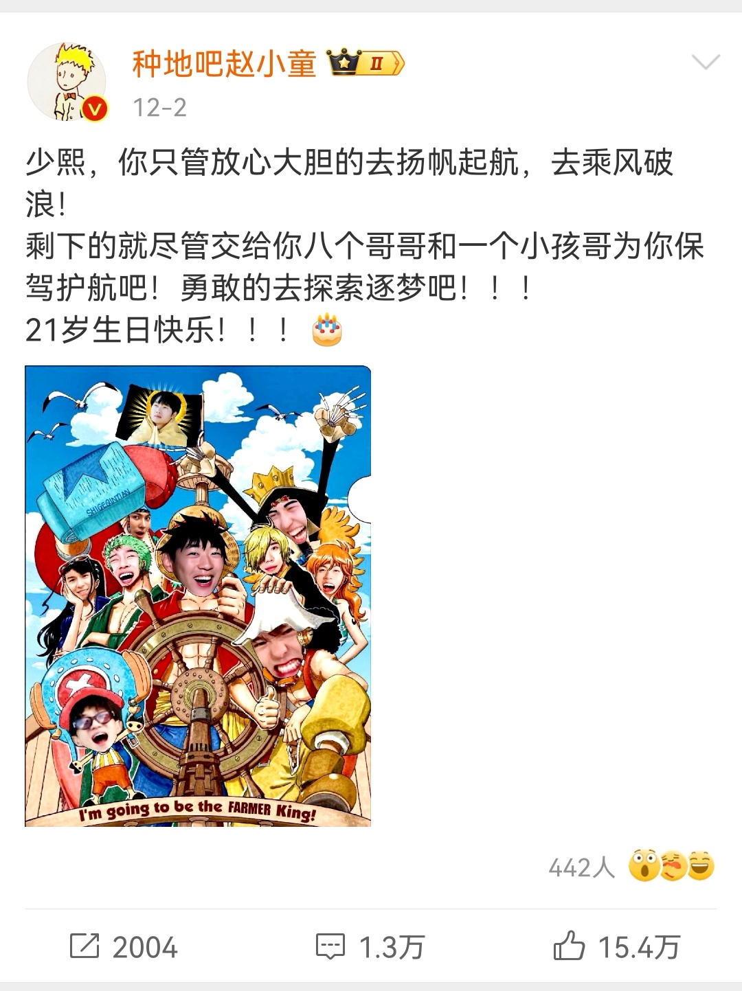 12.3陈少熙生日发布海贼王主题生日蛋糕
