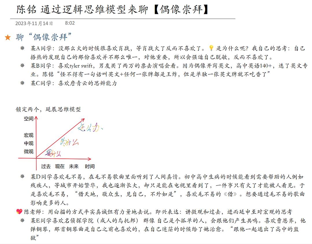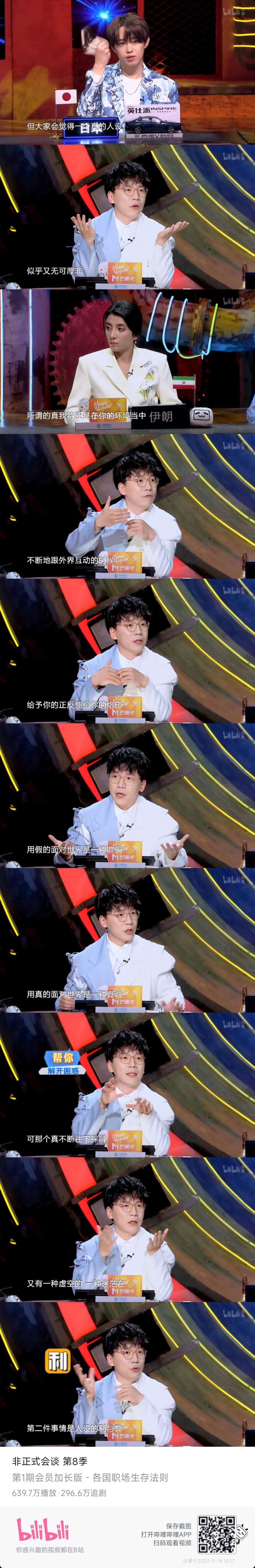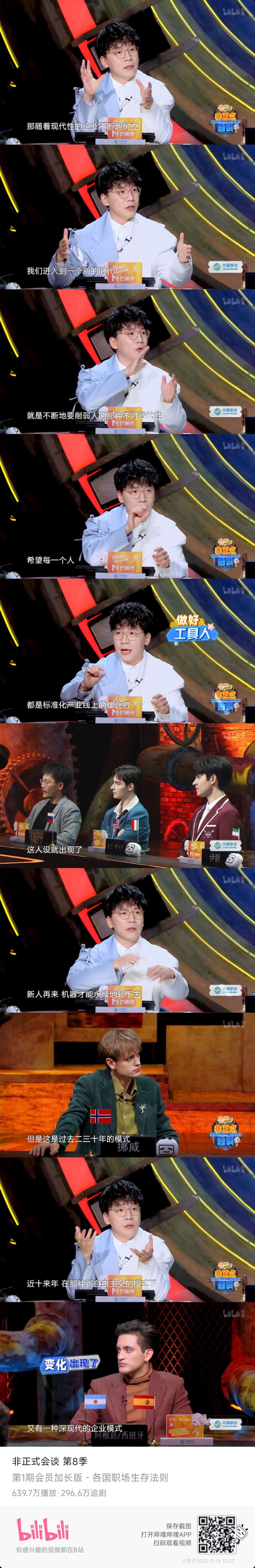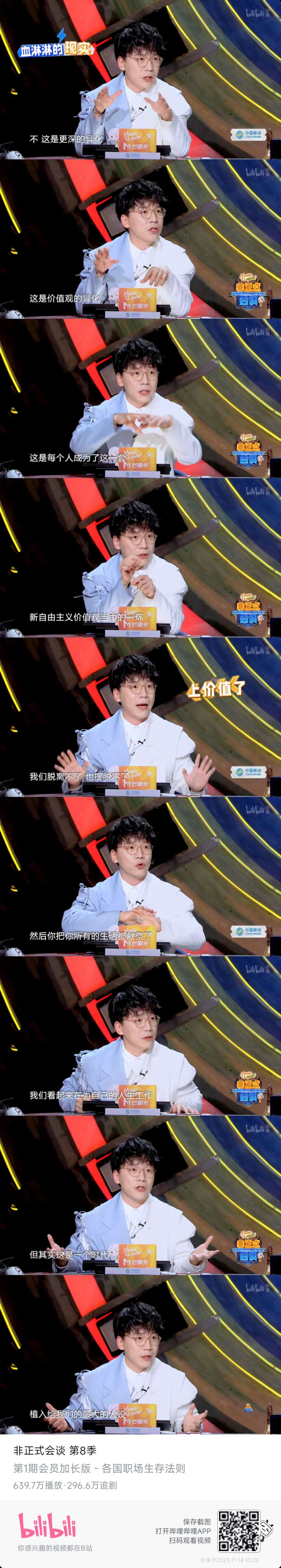 今早8点刚刚近距离看到陈铭老师!听课堂发言有感,和这期节目有某些神奇的联动。昨天刚追完非正式会谈第八季,今天就见到了电视上的人物,ps陈铭老师身上的少年气体现在时时刻刻,比如上台讲课前向前抛矿泉水瓶再自己接住n非正式会谈第八季有专门探讨立人设的话题,还有非洲代表提到了他们国家的校服,提到会因为自己的校服受到歧视,可以去看看。plus会员版,陈铭老师对异化的探讨也堪称绝佳!n觉得鞭辟入里,打工人何尝又不是整个时代植入给我们最大的人设呢?