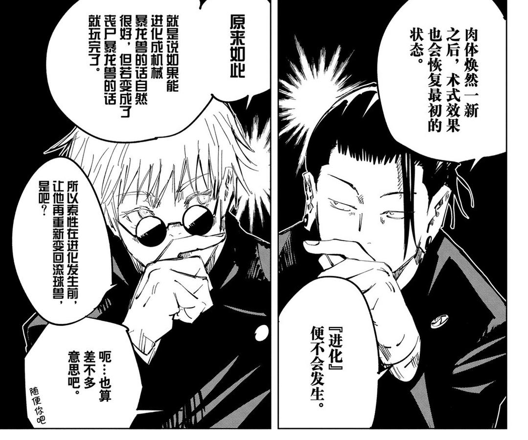 (内面)……大家都变得更强吧,不变强就会被抛弃……(五条悟对伏黑惠也说过类似的话)