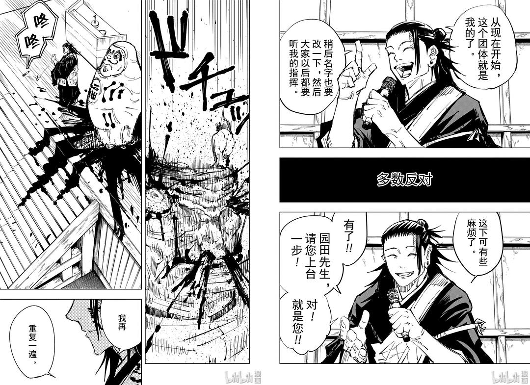 天内理子事件,五条悟觉醒。夏油杰发现咒术师的工作所保护的民众遵从愚蠢的信仰,为除掉自己的同类拍手叫好。夏油杰再次对保护这些人的意义产生了动摇,但是他也不知道什么才是有意义的?