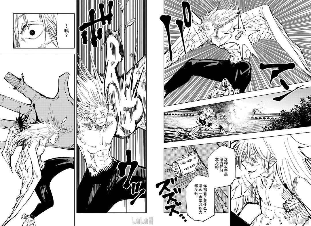 这作发展到第二季的时候,一个巨大的缺陷已经严重到影响剧情了,那就是战斗力分配不平衡,一部热血战斗漫中战斗力配比是极重要的一环,必须要有一些实力略高于主角团的小反派,实力初见一望无际的大反派,主角团靠自身努力、领悟、学习、继承、获取神器等方式超越自己解决问题战胜一个个小反派,最终付出巨大代价赢下了大反派,这剧情才好看。 n而现在就是反派团随便拿一个四天王都完全是另一个维度的碾压,自己无法获得胜利只能靠机械降神,which是编剧里面的大忌,而且这大忌还连用三次,章鱼头是伏黑甚尔限时返场干掉的,漏壶和魔虚罗是宿摊干掉的。这就让就主角团在第一季里的成长过程对于剧情完全无关紧要,观众发现这些曾经关注过的人物成长对剧情一点关系都没有,这对观众对剧情的投入是致命的,只剩下一些战斗的大场景还值得一说。