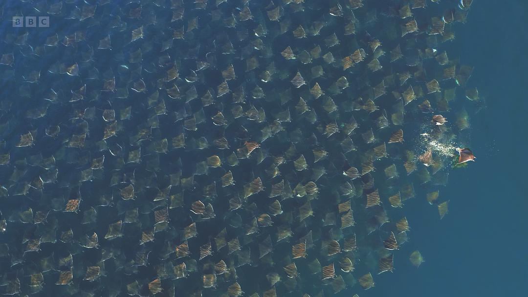 5. 蝠鲼与虎鲸: 蝠鲼群聚繁殖,虎鲸团队狩猎,幸存蝠鲼继续求偶。