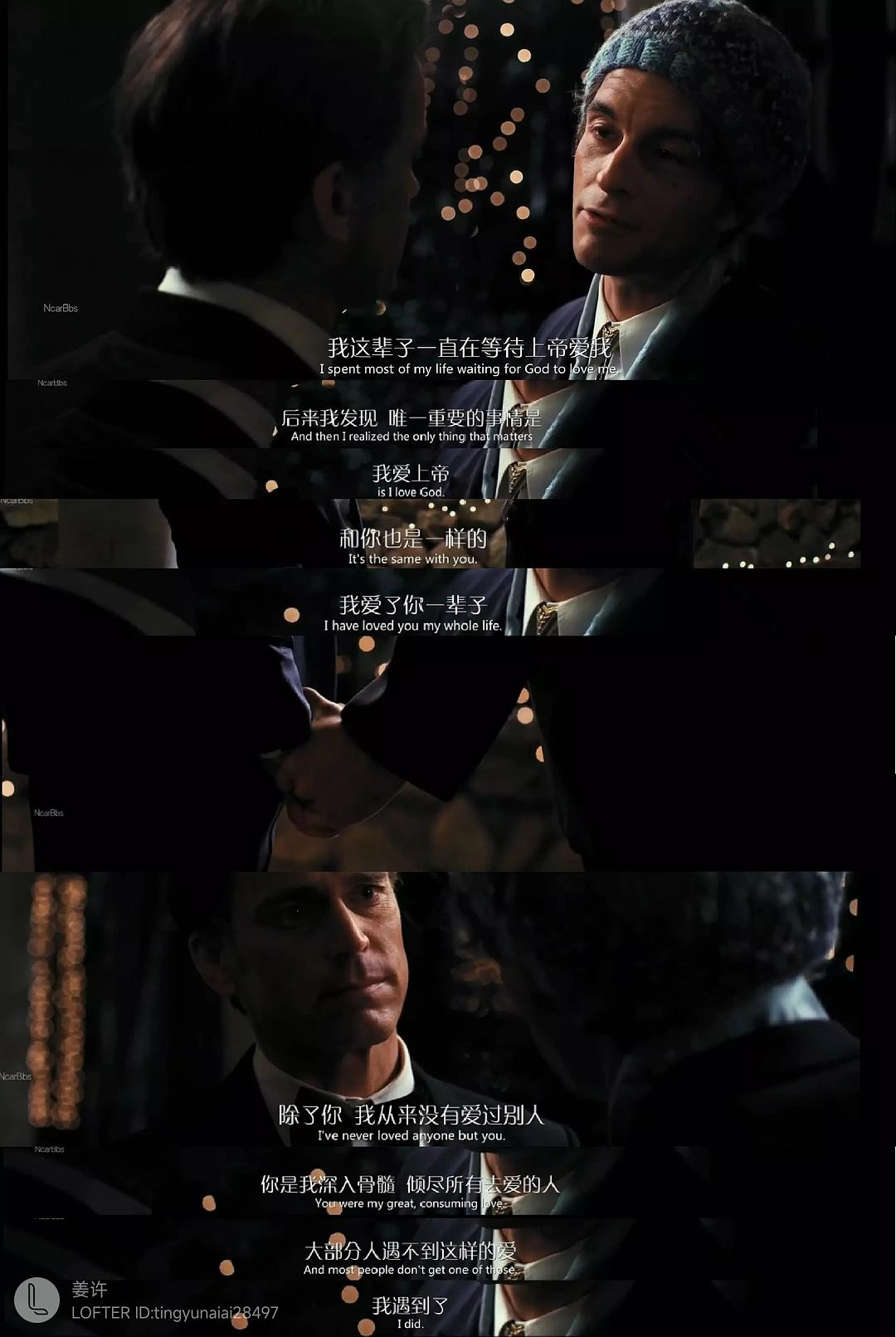 这一段话跟Tim最后的剖白有异曲同工之妙,但Tim则更加神圣。爱很多时候不是为了被爱,爱本身就是一种不可抗拒的本能和圣洁伟大的皈依,爱这件事本身就足够重要。