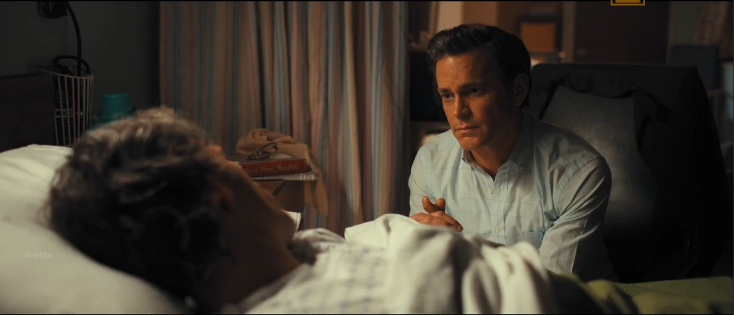 而且肌肉也是一把双刃剑,为什么已经成为爷爷、满脸老人斑的Hawk还一身腱子肉,为什么已经病危的Tim还如此强壮,演员们舍不得(也或许是导演要求)放弃银幕里强健的自己,自然也无法贡献出最恰如其分的表演。Hawk在演绎精于算计的公务员/政客时还算妥帖,但在与妻子的感情戏、与儿子的亲子戏里则缺乏真实的情感流动。Tim强扭的美国口音让人出戏,在忏悔室里一边困惑一边中气十足地瞪眼说话,在临终前还可以上台用胸声摇旗呐喊,也让人出戏。