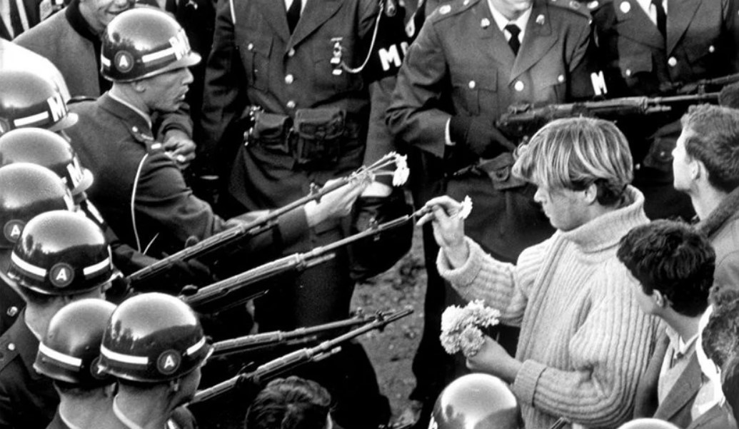 这是夹在婴儿潮和轰轰烈烈的X世代中间,迷惘或被遗忘的一代人。根据MBN的信息,这一代人在成长过程中刚经历了flower power(下方照片,反越战的标志)、嬉皮士、披头士,他们普遍更加愤世嫉俗。这也跟Jackson的性格和诗歌相关。