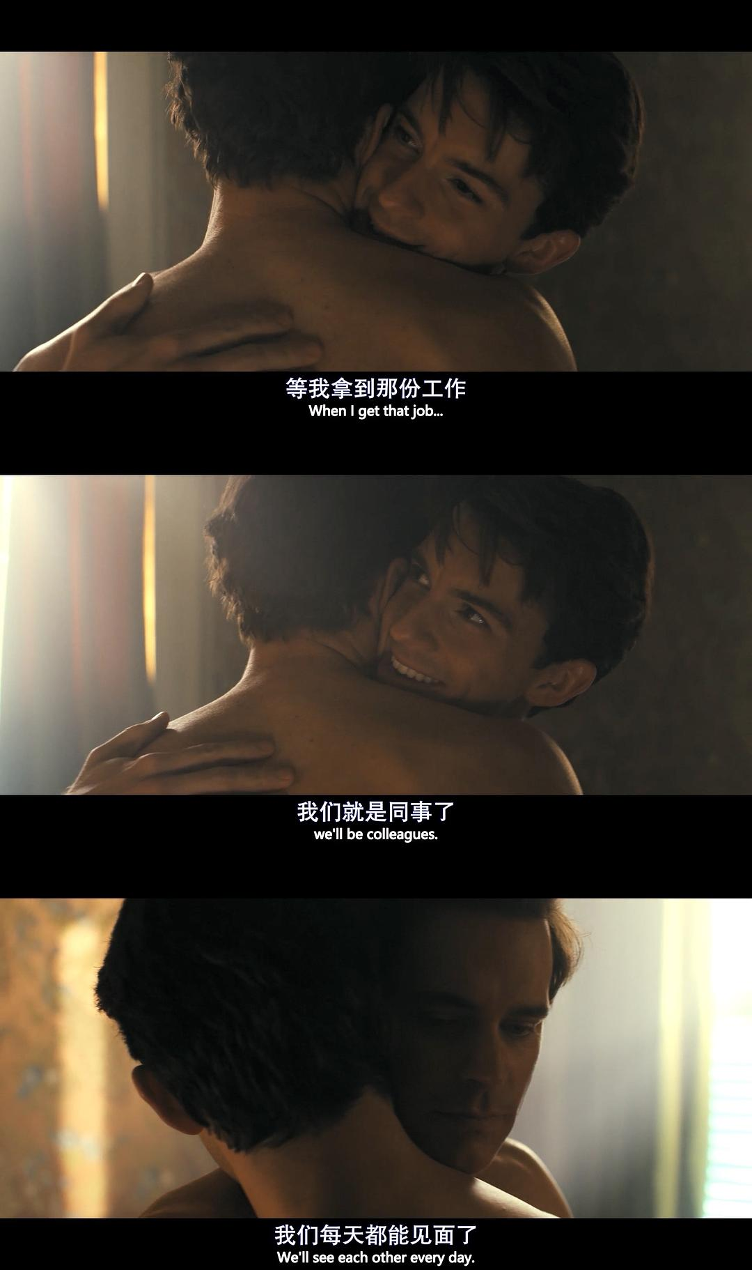 乔贝贝的演绎也是超绝,不同人生阶段的Tim是如此分明。我最喜欢从军队回来的Skippy,曾经的男孩成长了,被军队打磨出了一丝冷酷从容高不可攀的味道,让Hawk更加欲罢不能深深沦陷。他的脸上写着NO,眼睛和肢体却是赤裸裸的调情,是Hawk最想要的那种独立、自我、随时都能抽身而去两不相欠的完美情人。