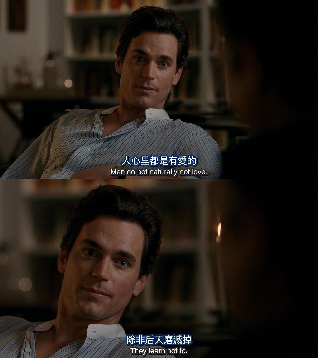 Matt在《平常心》里饰演的Felix有这样一段台词:Men do not naturally not love.They learn not to.