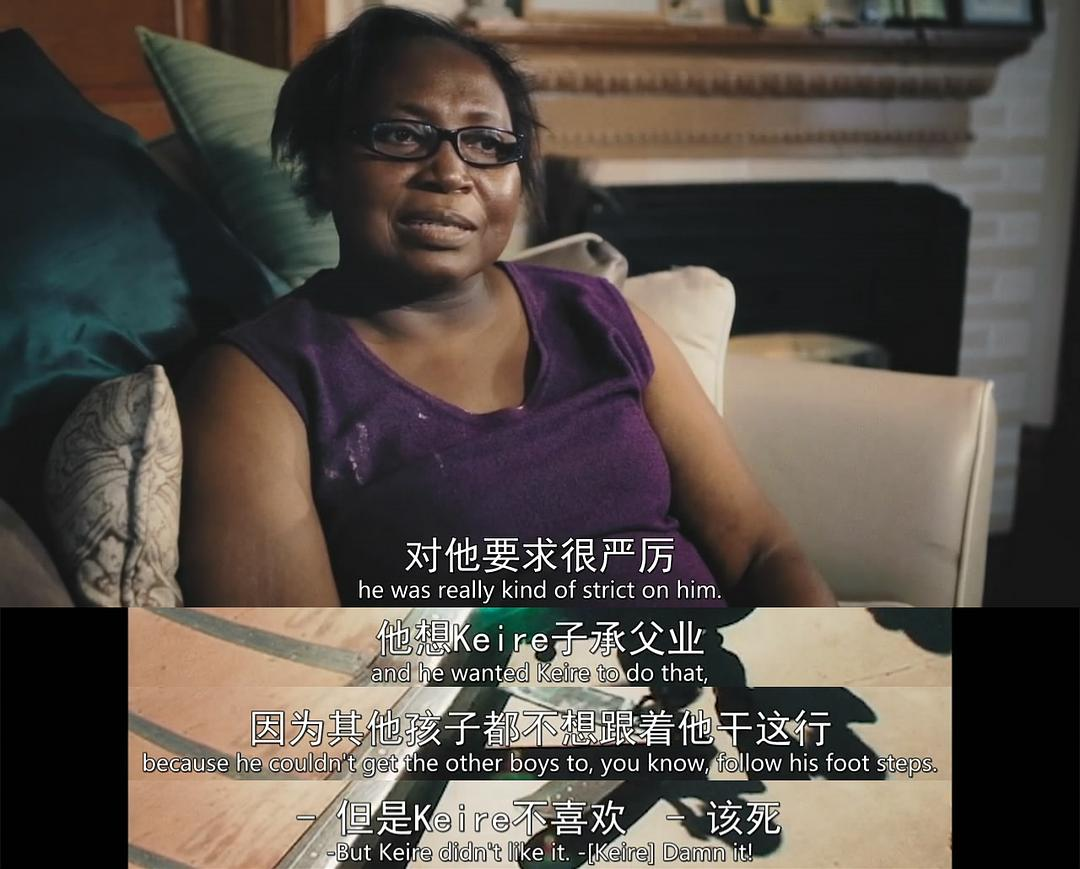 Keire是个很憨厚的黑人男孩,似乎就是不怎么读书懵懵懂懂。和爸爸说I hate you之后离家出走,在爸爸五十几岁死前都没和他和解。最后,去墓地千幸万苦才找到他的坟头,痛哭流涕。他在餐厅努力洗盘子,后来做服务员,觉得比洗盘子好多了,而且能挣钱补贴家用。最后和儿时的小伙伴渐行渐远,试着高考,最后决定离开他曾经口中逃不开的小镇。