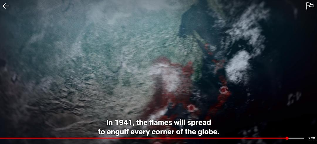时间线到达1941年,涉及到东亚战场和中国的,只有上面那张截图。基于我的价值观,以及个人对纪录片的标准,我批评这部纪录片存在基本史实错误。这部纪录片是全球发行的,试问,日本观众会以怎样的视角来看?是否会间接强化了他们右翼的”解放东亚说“?对于日本右翼 (详情:观看B站暗访靖国神社的短片),他们当年可是致力于共建繁荣,解放亚洲呢。
