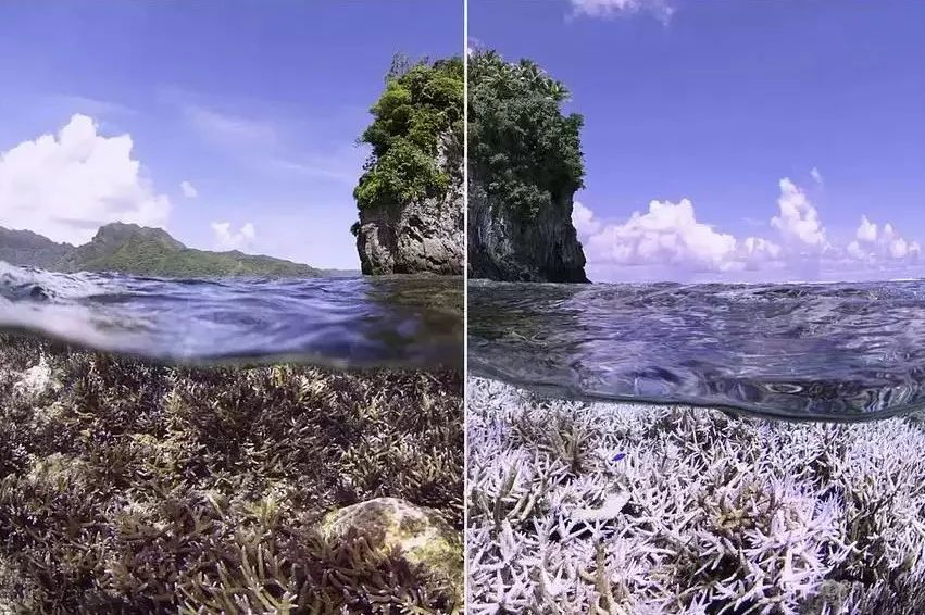 但是由于全球变暖,海水温度升高,活珊瑚开始大量白化。