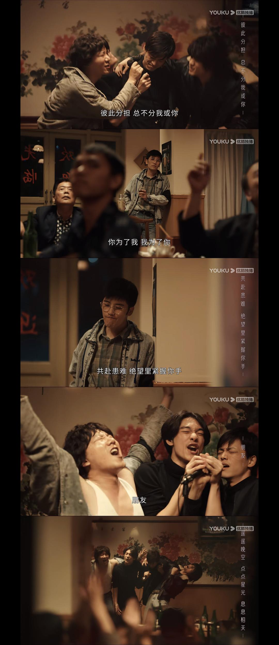 我想这也是《似火流年》会多一点打诨插科的喜剧元素在里面的原因,这本身就是一个很沉重的故事,所以放水加一点糖。如同城南五虎当年一起喝过的酒、唱过的歌、吹过的牛逼,以后都要用他们以及他们珍爱之人一生的眼泪来还。