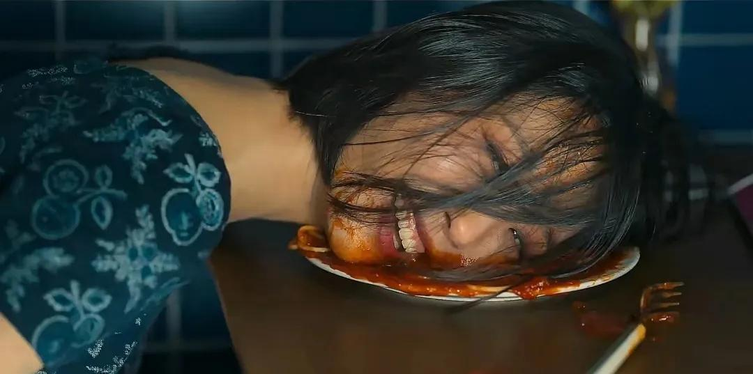 在制造惊悚效果上,导演大量运用心理蒙太奇——以想象、梦境、闪回等“心象”而非真实的画面剪辑,例如麟夏把柳成雅的头按进盘子,番茄酱像血一样,她发出怪笑,实际是想象中的场景,并非真实。