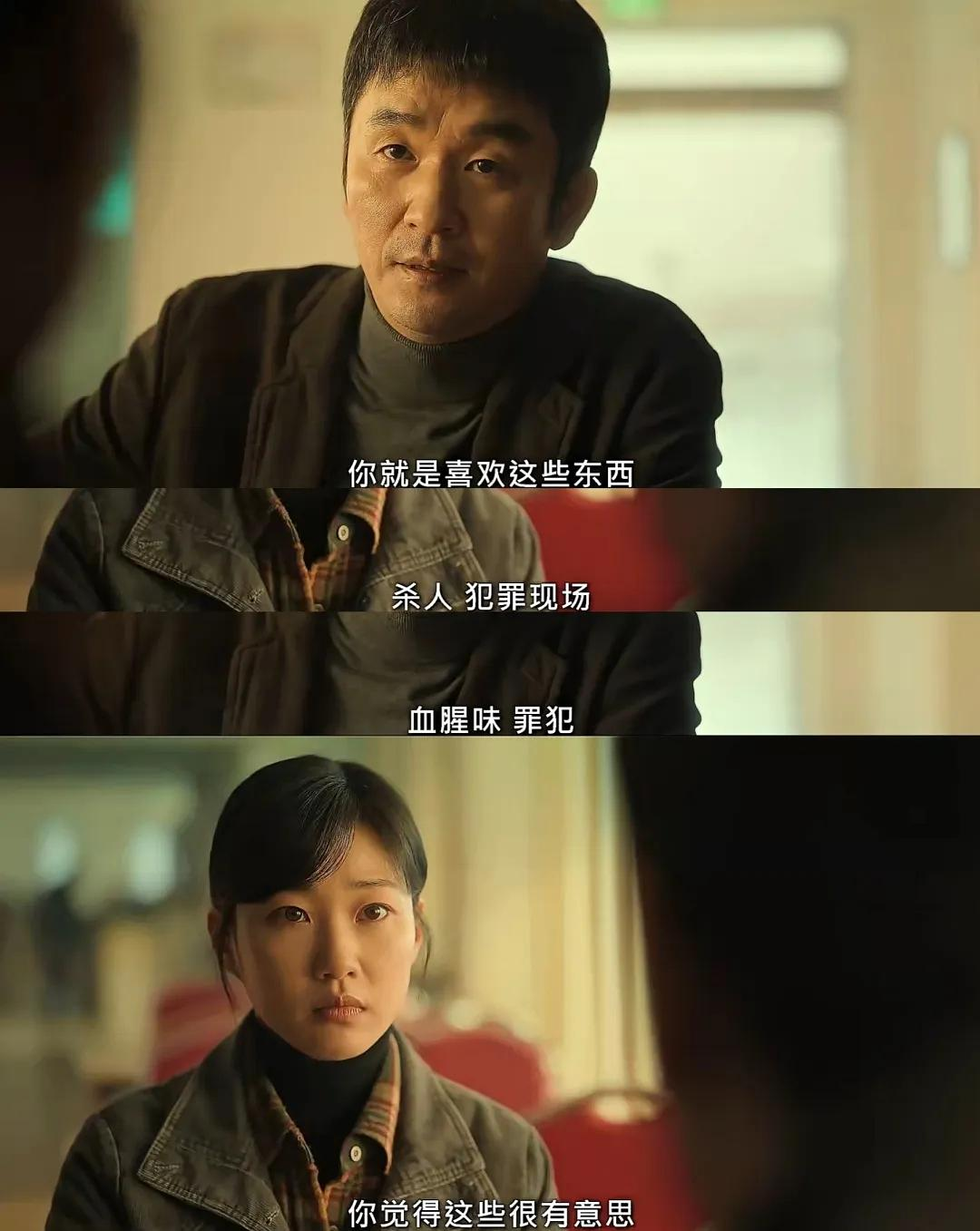 女警察虽然戏份不多,但也塑造了不同于一般的警察形象,比起正义之类的说辞,她就是喜欢这些,就像《分手的决心》的男主海俊,是一个“得有杀人和暴力才幸福”的警察。