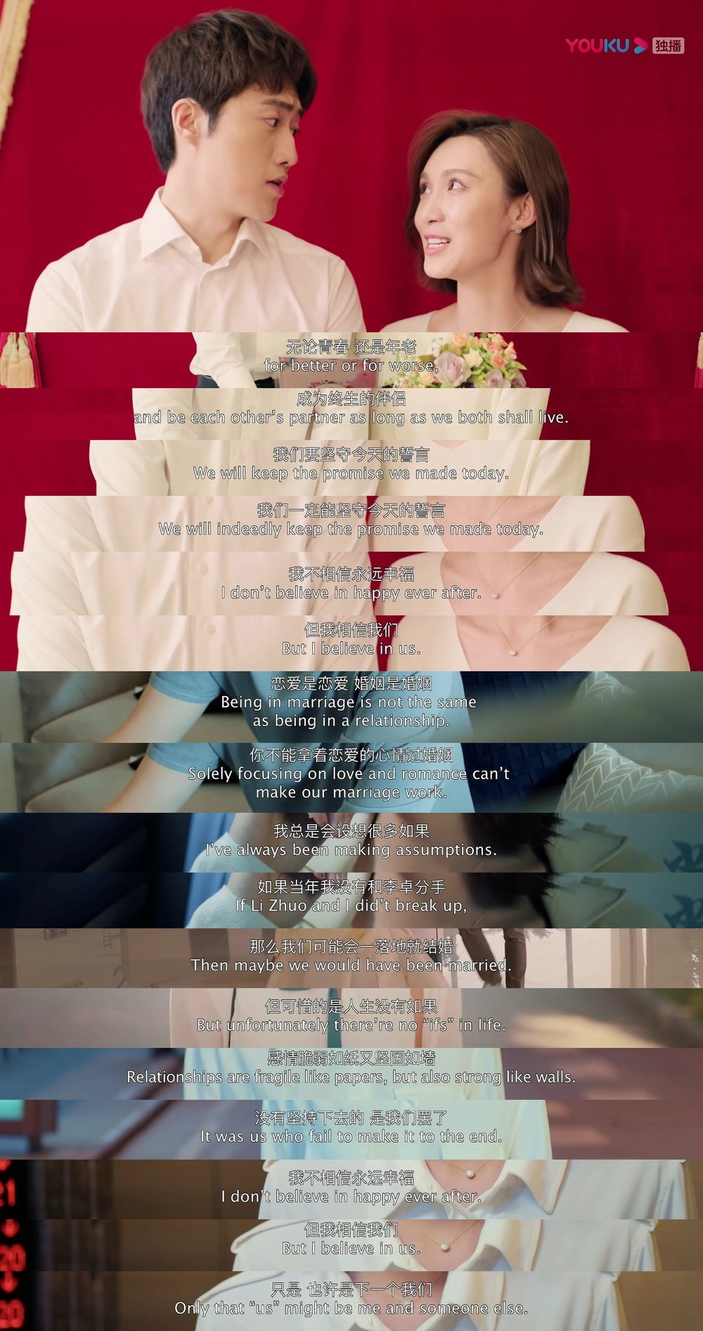 成年人的世界早就没有了绝对的是非对错,更多的往往是权衡利弊。但总有少数人愿意坚持自己,比如楚楚。我没办法完全否认王海洋,他说的也有道理:“爱不爱的或许没有那么重要,我们有时候需要的更多的是陪伴”。