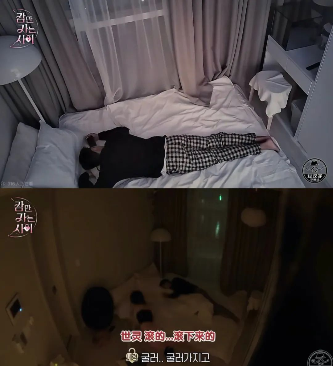 女生出来后没法儿只能也躺下,但是男嘉宾是躺在床中间并且压着他们两人的被子睡的,女生只好睡在床最外侧的一角,她还睡不着,后来直接睡的地板。