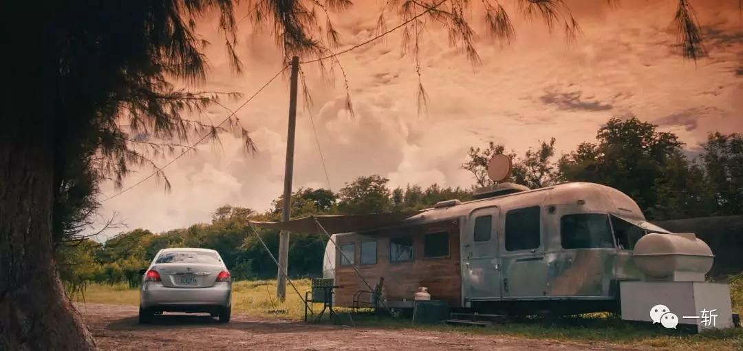 镜头一转,女友开到两人非常有逼格的破房车家中。
