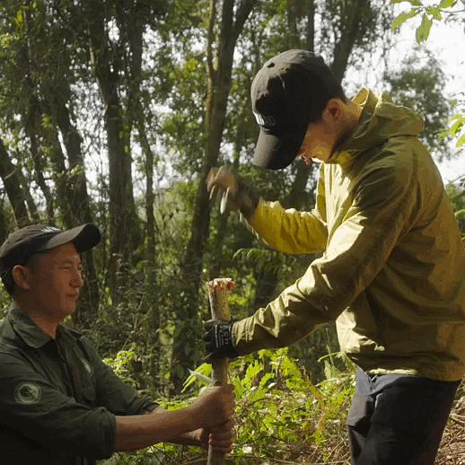 他之后的寻护路上发现穿山甲洞穴时就指出,洞穴周围倒了的树干上也有适合白蚁生存的痕迹