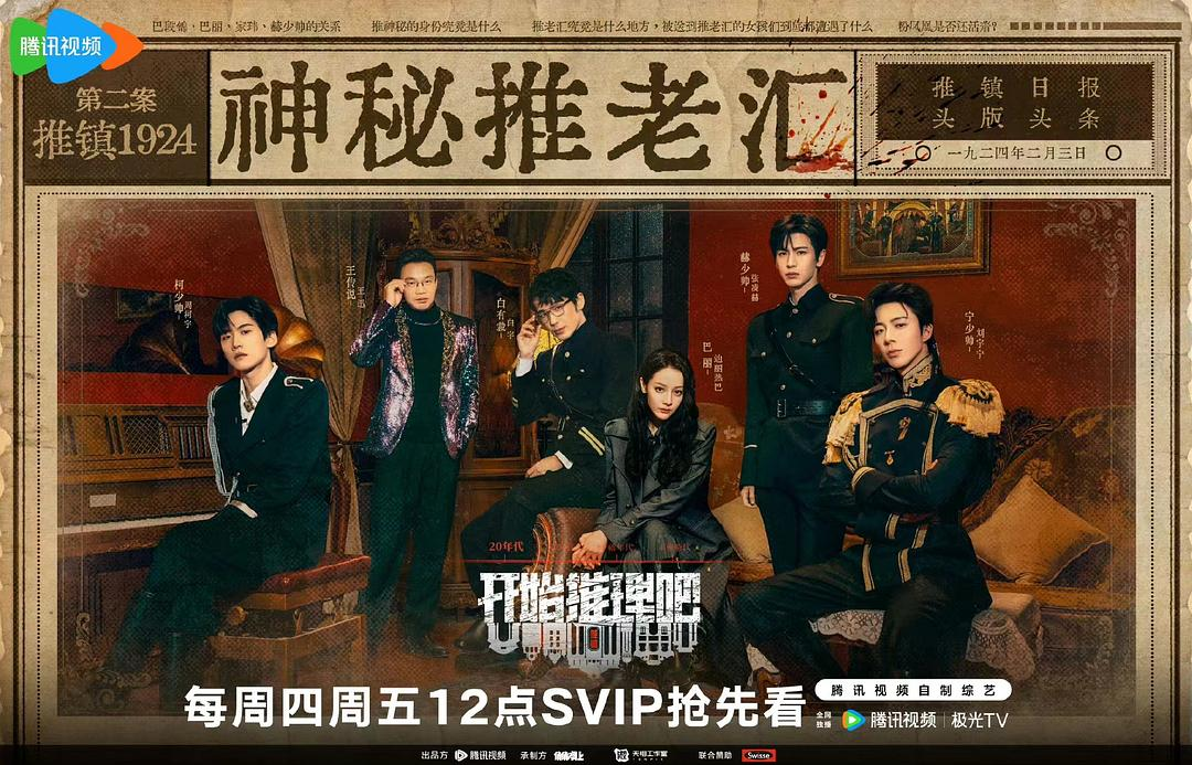 20240509第二期:神秘推老汇,两星。嘉宾:白宇、迪丽热巴、刘宇宁、张凌赫、周柯宇,飞行嘉宾:王迅。NPC:许天奇、周英俊。整个二元一次方程只有张凌赫一个人会算,投票前迪丽热巴突然点名无人怀疑的周柯宇是凶手,把案件定性了,这一出很溜。 凶手周柯宇与X侦探刘宇宁失败,侦探白宇投票正确一枚金钥匙,迪丽热巴、张凌赫、王迅正确一枚金钥匙。