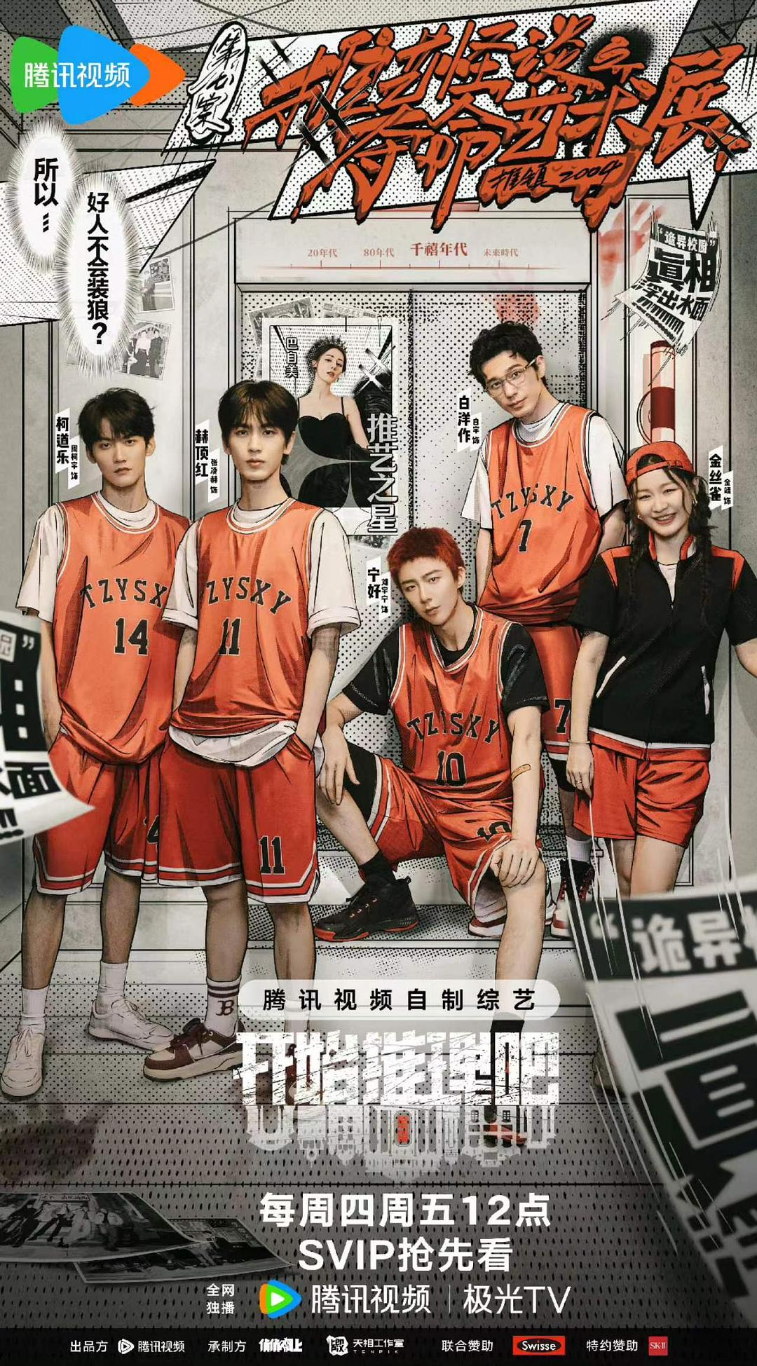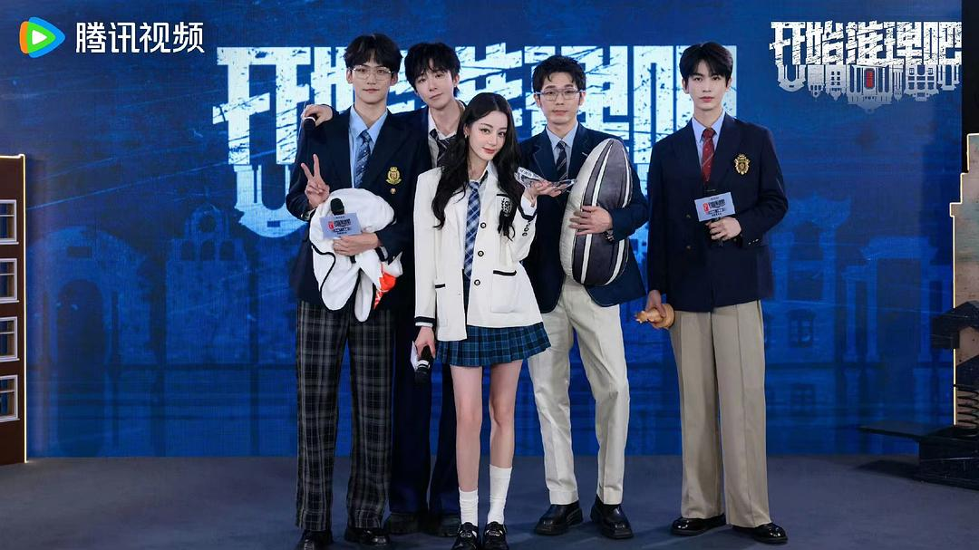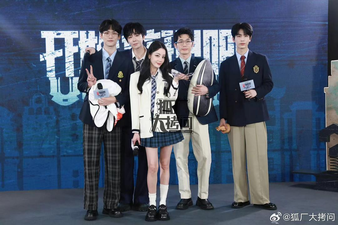 20240425陪看+20240501发布会,嘉宾:白宇、迪丽热巴、刘宇宁、张凌赫、周柯宇,飞行嘉宾:金靖,主持:崔邵阳。青春高校制服,刘宇宁的脸修图修了两周,4月18号的现场硬拖到下月1号发图,硬给一个39岁的大叔修成了34周岁的小伙。同名主题曲《开始推理吧》发布,白宇、迪丽热巴、刘宇宁、张凌赫、周柯宇演唱。