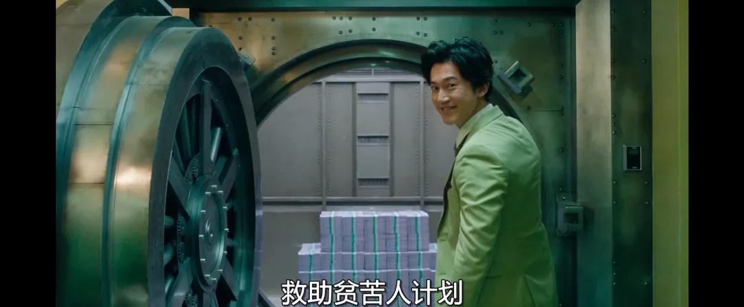 吴慷仁饰演万喜银行董事长陈海瑞,他推出了一个BST货币慈善捐款计划,意思是说银行募集的越多,挣得越多,未来就会捐的越多。听起来就像画大饼,还用了一套公益性的骗局话术,他早就算好在任期结束前来一波卷包烩。