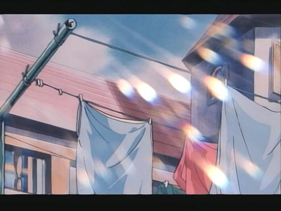 同样应当指出,这样一种将情感变化的高潮直接略去的留白做法,是安浓一贯的手笔之一,在02年的新作短片「雲光る」也出现了类似的处理。以超验形式而论,这是通过绕开凝滞性,来实现凝滞性。
