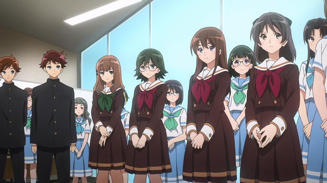关于真由:总觉得她是一个自始至终都非常可怜的角色,她的一切都是剧中人和剧外观众加之于身的,她就像个洋葱,一层层剥到最后发现根本没有内核。在小说里她的功能性过强,也没有得到令人满意的结局。京阿尼想要给她某种救赎,但这样的救赎来得太晚,太不是时候,且她的救赎跟是否需要替代久美子参加多重独奏无关(事实上在两人选拔前,久美子几乎已解开真由的心结)。也许把本集的戏剧性安排在关西大赛前、大闹一场后大家放下隔阂、凭各自努力参加全国大赛选拔再由久美子胜出,是一个更容易为我接受的剧本,但关西大赛前后的烦心事被丽奈的“部长失格”占得满满当当,两件重量级的事都集中到中段的话,难免会使后半程过于顺利而平凡无趣、缺乏张力。如果再提前、把真由事件放得更早呢?那么煞费苦心安排一个转校生来又显得多余。只能说天降一个高手以扰乱主角心的这个原初设计本身就带上了不可避免的矛盾。回到真由自身,作为一个罪不在己而被朋友抛弃、频繁转校的人,她多少带点天才苦命的悲痛和谨小慎微的胆怯,她也许是真的打从心底想帮助久美子和整个吹奏部、想和所有人成为朋友,但她又不愿意轻易背叛如此热爱的音乐,同时也许还会陷入深深的自我纠结和否定(例如会觉得自己不存在、作为旁观者就好,自己真的配得到这些吗?),这三个矛盾以最糟糕的形式集中爆发,成为反反复复令人烦躁的“哑巴梨”攻击。哪怕是设计一个小奏和真由大吵起来导致一方破防、由久美子调解后三人释怀的俗套桥段,可能都比现在这样更能让我接受。最后,京阿尼在本集对两人多重独奏选拔的音画表现上多此一举的各种刻画与暗示,也引起了不必要的争议。