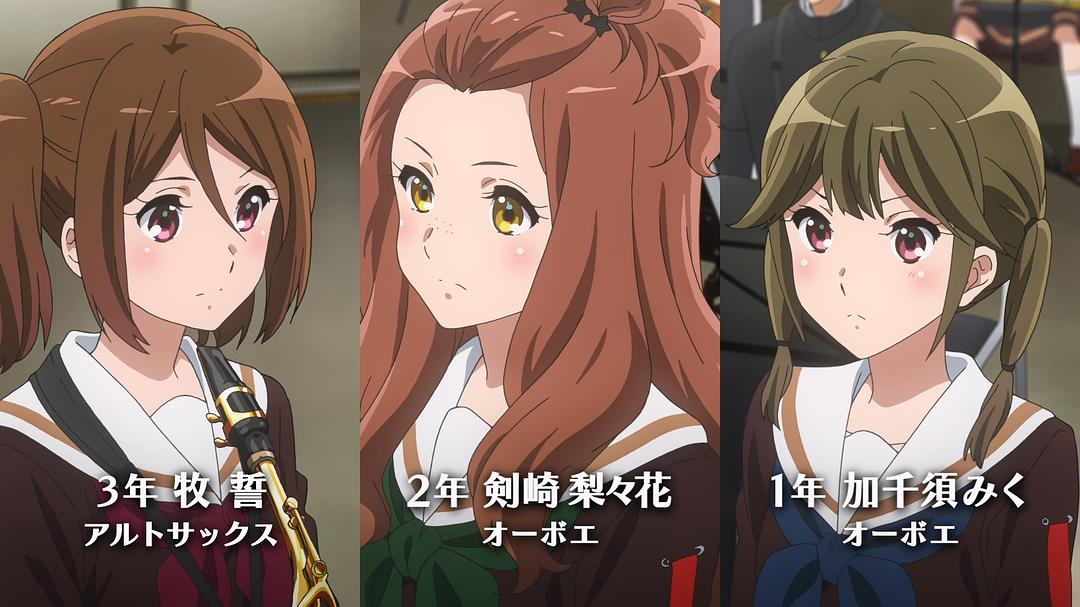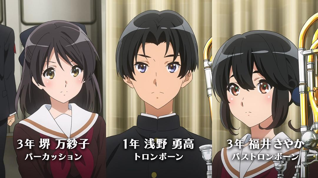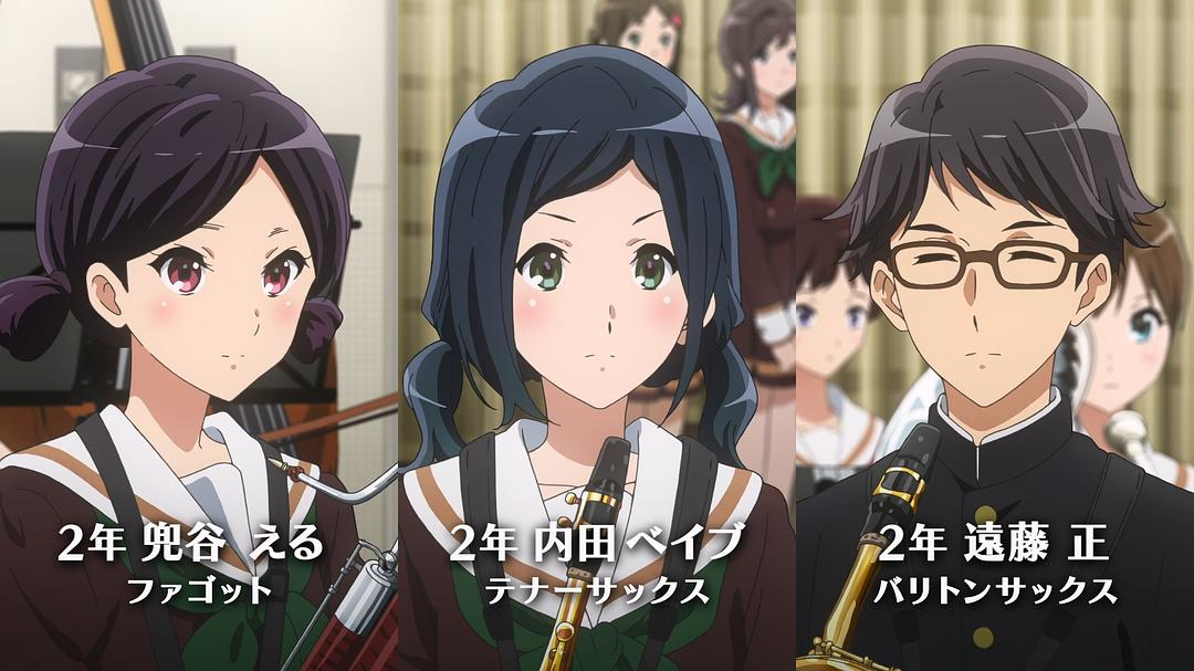 长/短笛声部长 & 短笛大魔王:个人觉得山根担任声部长的悬念不大,河豚妹到第三季有点迷迷糊糊,好像一会儿和同组人在一起,一会儿又不知道游荡到哪里去了,实力也存疑;平石成美责任心有余而能力有限;新生里,短发的一年生能力过硬,但显然没啥气场;发箍的一年生在MONAKA。总体来说长笛声部的后续发展是令人担心的,感觉会在山根的佛系带领下继续保持他们中立、事不关己的特点。至于短笛大魔王,个人觉得参照高桥沙里短转长的经历,如果下一代长笛一、二声部配置不均,泷老师很可能又让山根回到长笛一声部,而另选一人担任短笛(例如短发新生)。