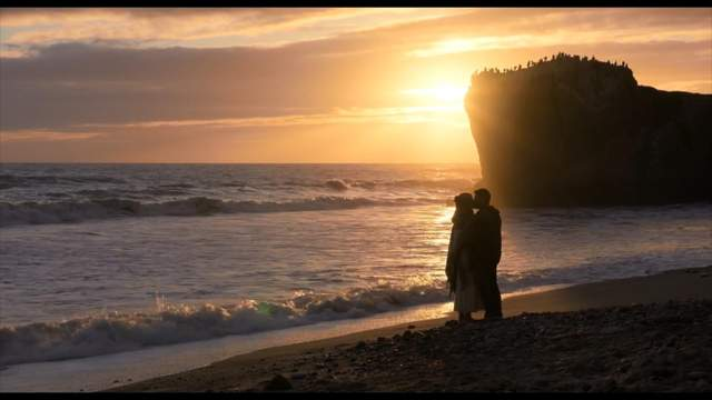 在海边、在沙滩、在夕阳下,两人留下了无数恩爱的印迹。