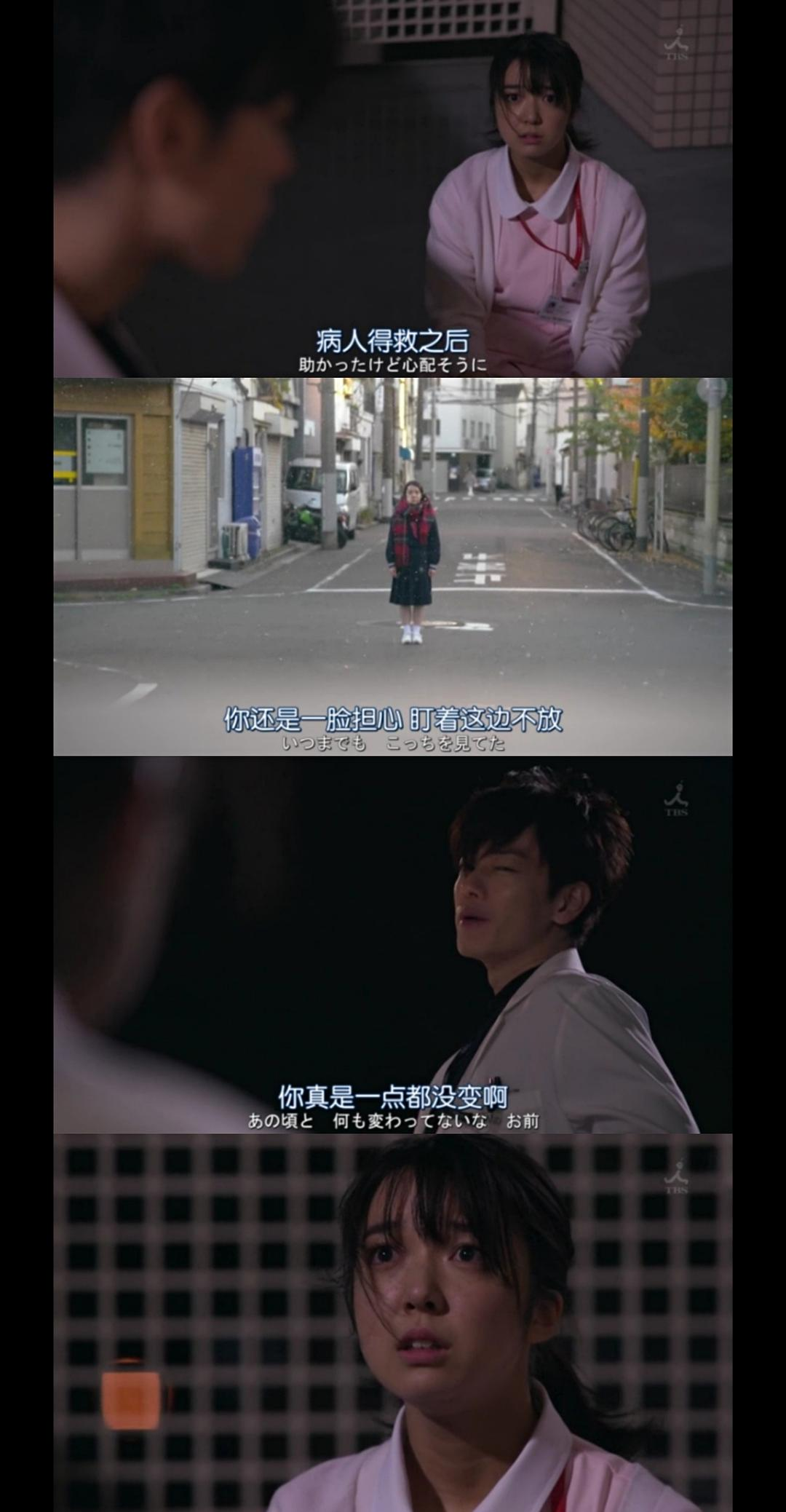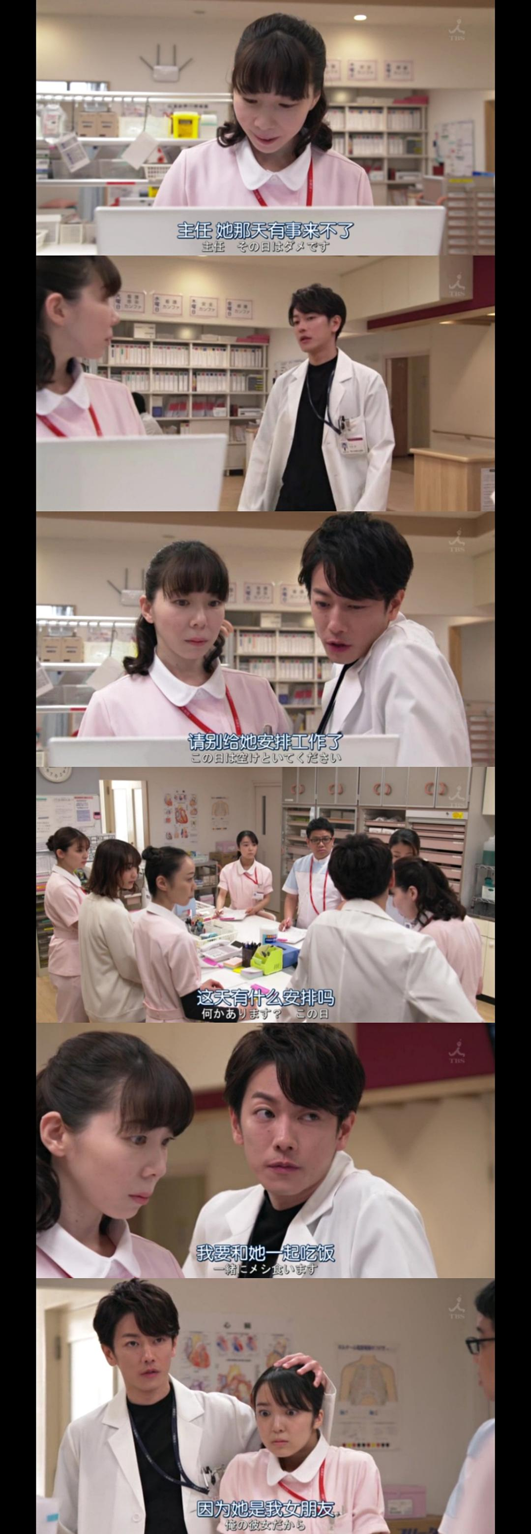 第四集片尾好像只有一个kiss,细想起来比起商量去保护佐仓时天堂的探头探脑,看到便签纸的时候怀着担心安危的心情他已经迅速跑出去了。事情解决之后两个人回去的路上聊天内容简直是谈情说爱级别////,跟踪狂和险些遇害是很恐怖的事情啊,这里算是佐仓的成长吧,已经不会随便说出辞职这样的话了,可能是所谓的医者仁心,可能是两个人的感情和在医疗事业上的坚定,口嫌体正直的天堂医生开始面对自己总放在佐仓身上的心。
