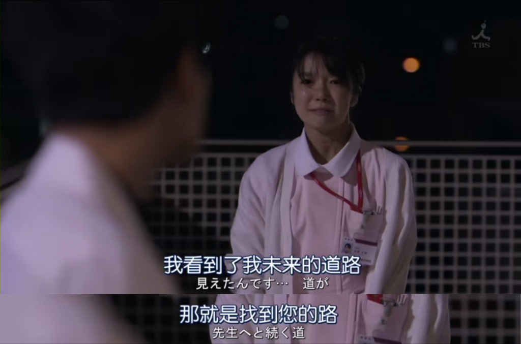 第三集的片尾佐仓在不断的质疑和碰壁中决心认真对待自己的职业,成为优秀的护士,借着酒劲向天堂表明心迹,不在意过去只想让你笑出来而已。