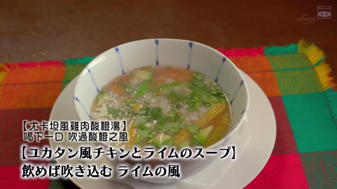 食物:厚玉米饼,尤卡塔风鸡肉酸橙汤,西葫芦布丁,墨西哥奶酪焗辣香肠, 墨西哥玉米饼(Tortilla),柠檬气泡水,吃完了不饱,又加了墨西哥酸浆南瓜子酱鸡肉。