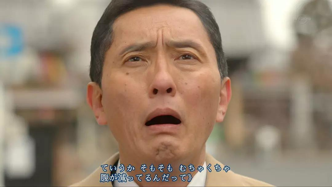 叔的饿很有特点,每次都是站在空无一人的街道上,抬头望天,苦瓜脸,镜头由近及远,营造出荒川旷野唯有叔孤零零一人的凄凉感。