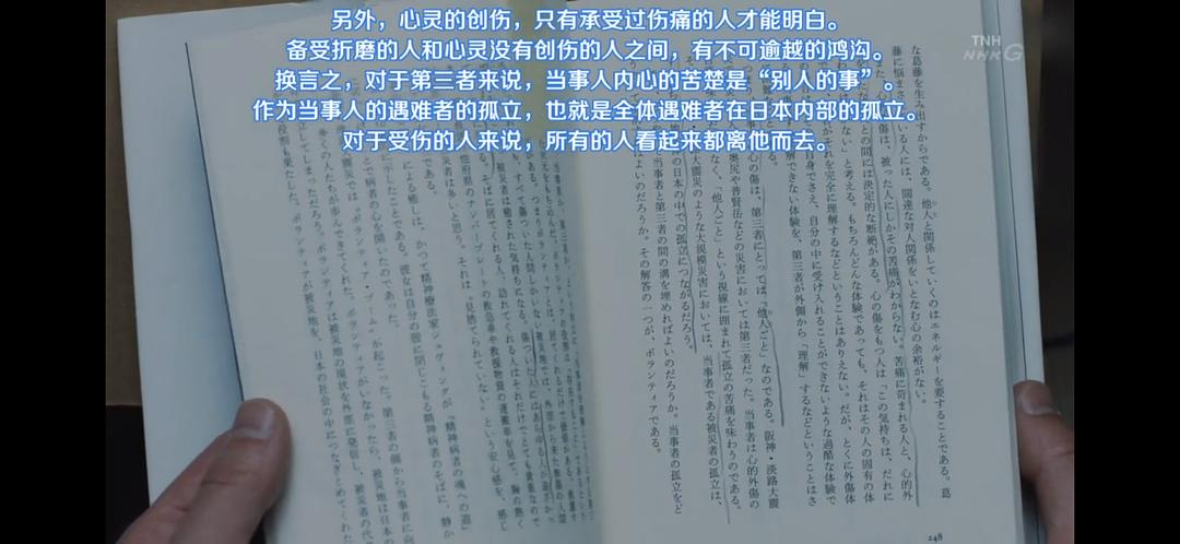 而在阪神大地震突然来临后,作为精神科的安医生和他的同事选择陪伴疗愈受伤的人们内心的伤口。