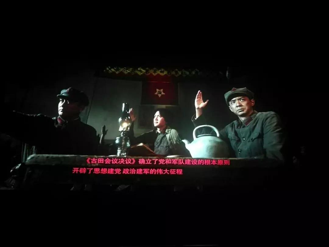 我觉得还有一个演员演得很好,刘安恭演得好。有一个情节安排得非常棒,当毛委员得知刘司令员牺牲的时候,他其实也很伤痛。这个刘安恭是对毛主席直接造成伤害的人,也是给党直接造成损失的人之一。毛主席为什么伤痛?他希望刘安恭同志活着,将来能够知道自己的错误,希望和他能够在将来有一天沟通,说到底都是为党,都是好人,就是思想分歧嘛,认识不到位嘛!我们党早期是共产国际一手培养大的,毛主席一生——他的前半生就是努力摆脱共产国际的控制,但这是非常难的,非常难!怎么样又跟苏联和共产国际搞好关系,让他们支持中国革命,但同时要完成中国革命的独立自主,这个非常难。所以你看毛主席对待那些极左同志——解放后王明在莫斯科不回来,毛主席坚持劝说同志们要选他为中央委员。王明一直是中央委员,而且每个月把他的工资兑换成卢布,给他寄到苏联去。这就是毛主席的胸怀。所以我们就理解刘安恭,他是个极左的、一根筋的、代表机械唯物主义的那样一个教条的僵硬的人,但是他是个好同志,身先士卒,英勇为革命献身。毛主席多么希望跟这样的同志将来一起参加开国大典,其实离1949年不远——20年后就开国大典了。今年特别奇异,今年是古田会议九十周年。我今年年初的时候发了一条微博,说今年是——从一百周年,九十周年一直到十周年,我都捋了一遍,后来新浪给我这条微博删掉了,因为里边说到某个事件三十周年,它就给我删了。但是九十周年这件事非常重要,应该说是除了五四运动一百周年,第二就是古田会议九十周年。古田会议今天很多年轻人都不知道了,这个会议是非常重要的,虽然当时毛主席在党内地位还不算高,但是它的意义不仅仅是给军队确立了一个党指挥枪的原则,其实它是给整个中华民族重新建立礼乐制度的一个开始。