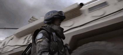 高温五十度天气三十公斤的防弹衣,百米外子弹的枪响,每天面对着反复响起的枪炮声,被击中的岗哨,被火箭炮打中的车。