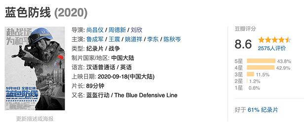 这是一位网友看完近期上映的纪录电影《蓝色防线》后的感受。《蓝色防线》在9月18日上映院线,目前豆瓣评分为8.6。影片横跨中非大陆历时5年的拍摄,350小时战地纪实素材,长达两年的创作。