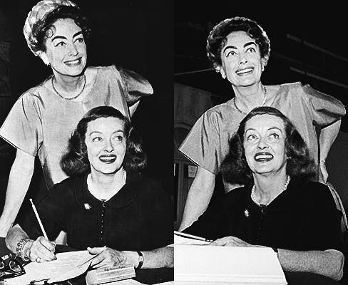 贝蒂·戴维斯想必在演的时候爽呆了吧!n那时候她不会想到,几年之后,自己真的可以在电影里对琼·克劳馥狠狠扇巴掌。nn———————————这里是《兰闺惊变》拍摄的分隔线———————————nn《宿敌》中,贝蒂和琼终于决定合作了,《兰闺惊变》签约发布会上,记者们都好奇谁会坐在左边,因为按照惯例,第二天报纸上的大图都是坐在左边的人。n苏珊演的贝蒂当仁不让往左边的椅子坐下。你以为这样就结束了?不!你有张良计,我有过墙梯。兰姨演的琼站在贝蒂左侧俯下身让记者拍了合影。n而这,并不是编剧编的。
