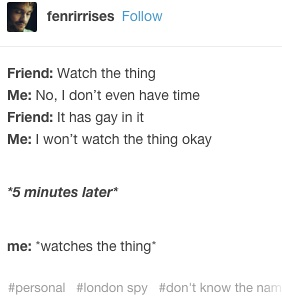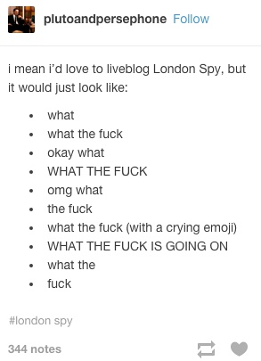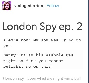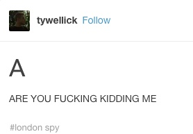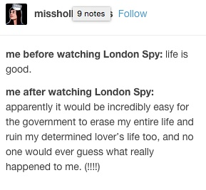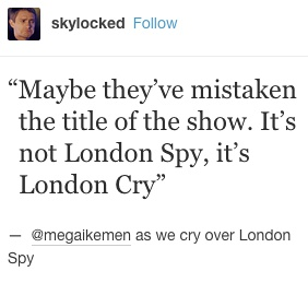 “早上好啊大家感谢london spy我这天都被毁了”