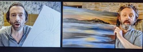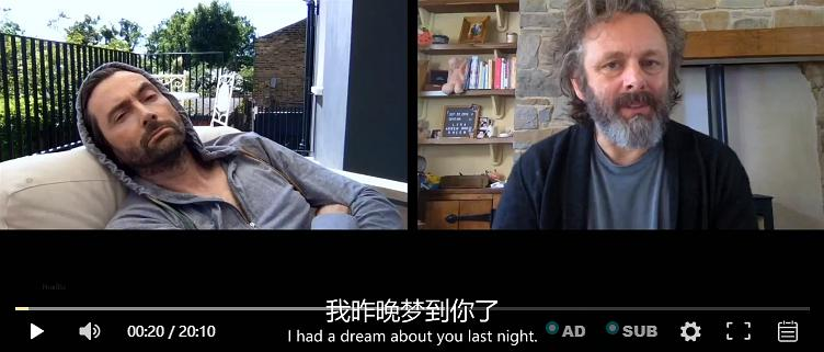我得承认,我去年看《舞台剧》,最开始就是奔着看《好兆头》“良心售后”去的,谁能不爱麦克·辛和大卫·田纳特呢?可当那个大大的剧名Staged出现在屏幕上时,随之而来的是一种特别神似《等待戈多》的荒诞感,西区都关门了,还staged啥?可心老师和大提提,也确实有点爱斯特拉冈和弗拉季米尔那味儿,漫无边际地斗嘴、和好,没在舞台上唠嗑,而是通过隔离时代最实用的视频聊天应用Zoom。嗯,是穿了赛博朋克衣服的《等待戈多》了。
