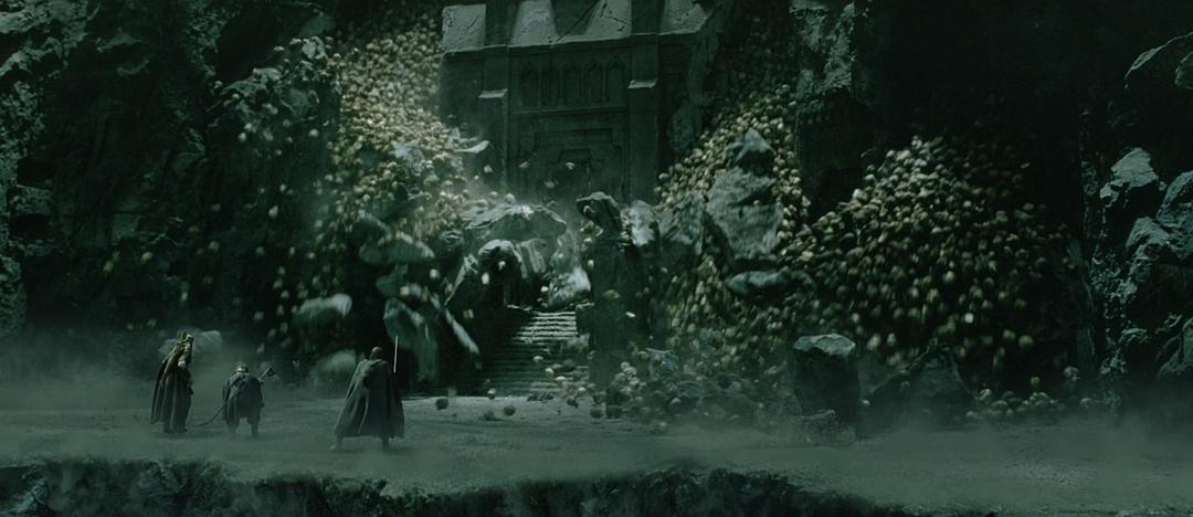 当Helm's Deep深谷响起Rohan骑兵嘹亮的号角时,Frodo正和Sam举步维艰地在死亡沼泽里移向Mordor的黑影;当Gondor白城在邪恶火焰的燃烧中挣扎时,Frodo和Sam正在Mordor的恶土上踏上阴暗恐怖的蜘蛛窟;当Gondor与Rohan联军在黑门向Sauron发起最后一搏时,Frodo和Sam正在厄运火山灼热的烈焰中匍匐前行。当一切希望即将破灭,当一切反抗即将失败,当命运似乎倾向一边倒时,Frodo完成了使命,销毁了魔戒。