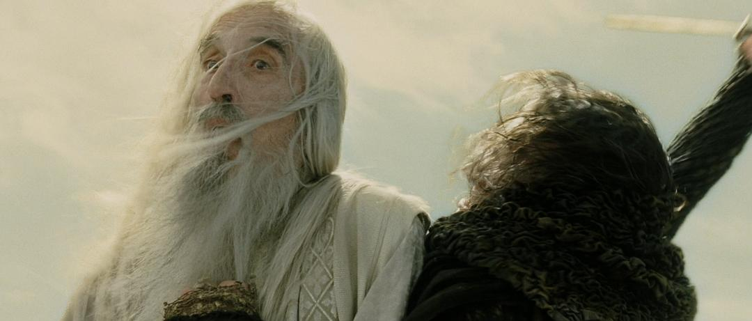这一切让我们不得不回想弗罗多原先的样子。那张脸,那双眼睛,我们可以用宝石用月亮用所有单纯美丽的古典意象来描绘。他甚至比所有纯朴的哈比人更单纯快乐。然而他选择一种靠近邪恶的英雄之路。在毁灭恶魔之戒的同时,他也被毁灭。在这里我们看到了人性的深处,纵使你所具有的纯真力量一如弗罗多,也难以摆脱内心的邪恶。