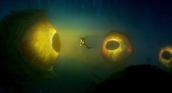 BOSS战2:海底的盲鳃+眼睛真心带感,吓尿,过程也……还行,通过眼睛发现猴子=妈妈也算是对剧情发展有推进。海面上猴子打小姨也是皮开肉绽血肉横飞,相对爽快很多,让我一度觉得这电影得至少PG或者14+,